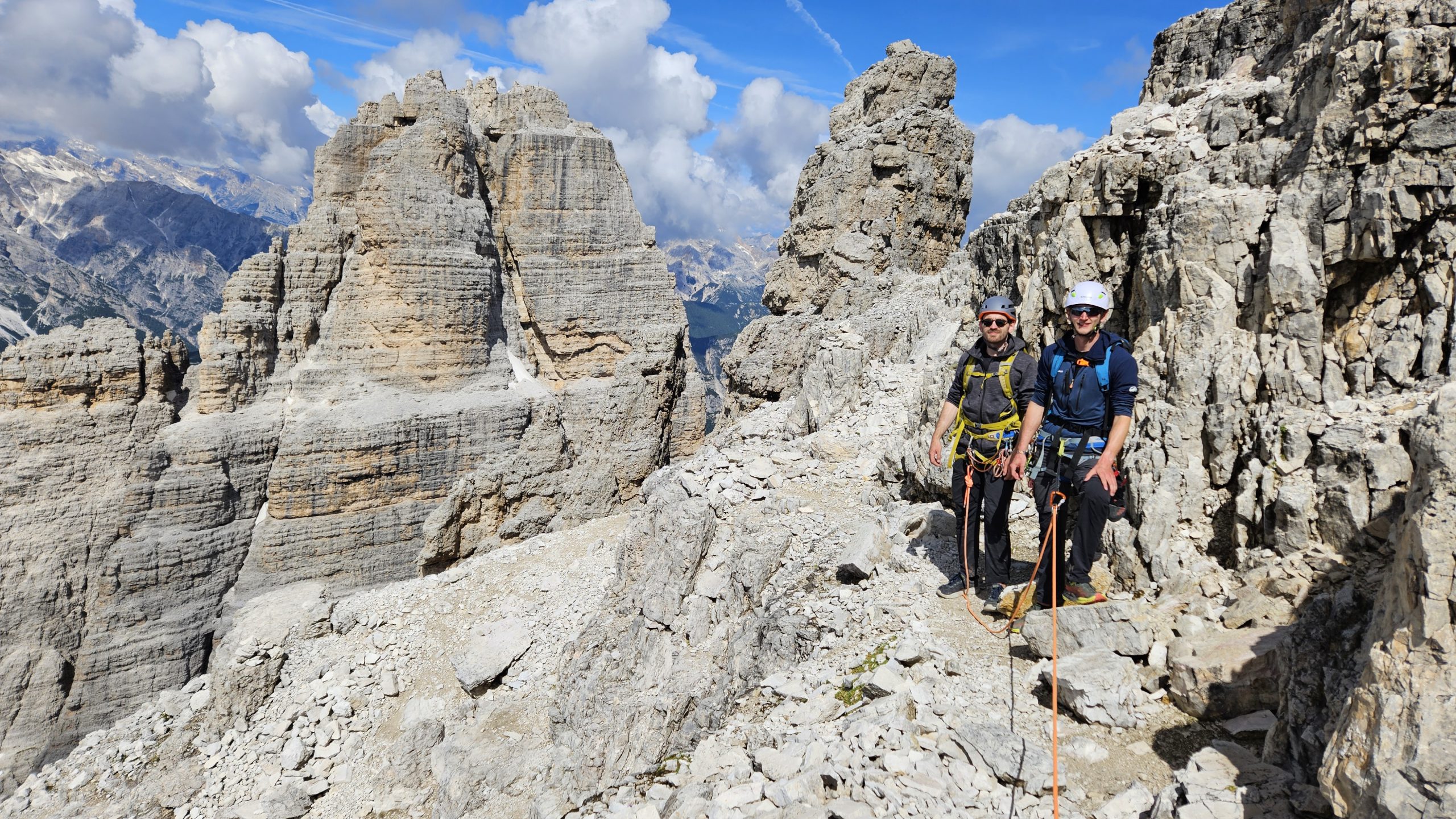 Anforderungen: Schwindelfrei, Trittsicherheit im weglosen Gelände, Klettern bis zum UIAA 5 - 6. Schwierigkeitsgrat