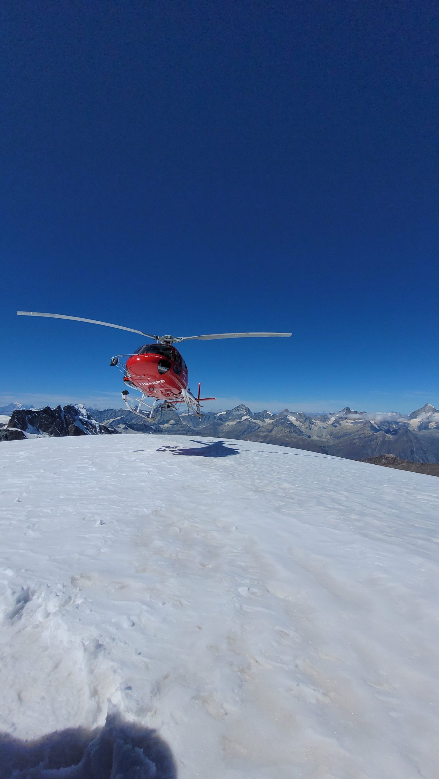 Treffpunkt ist um 07:00 Uhr beim Hangar der Air Zermatt. Nach einer kurzen Ausrüstungskontrolle bringt der Helikopter uns auf ca. 4.100 m, direkt an den Fuß des imposanten Westgrates.