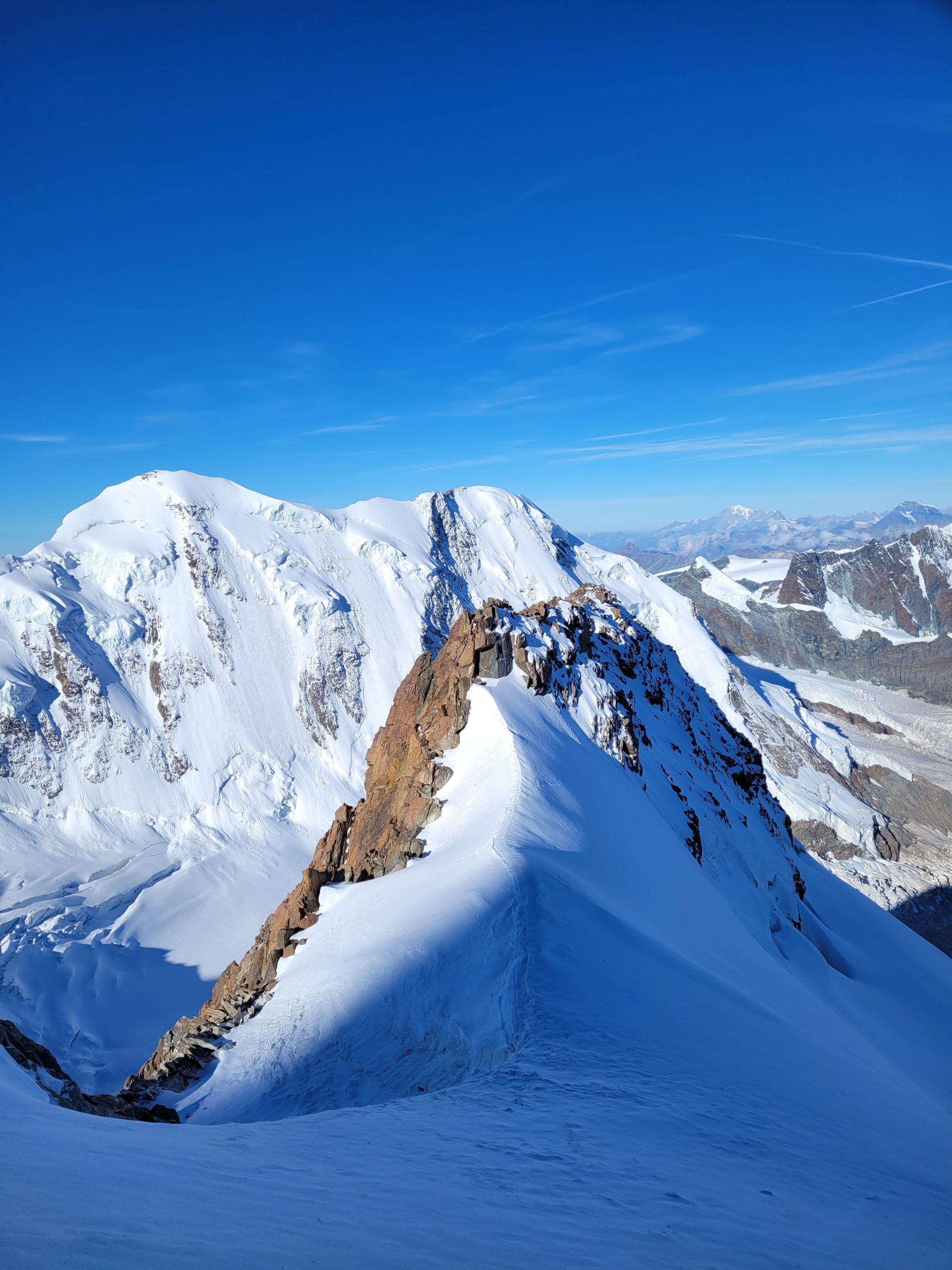 Die letzten 500 Höhenmeter bis zur Dufourspitze (4.634 m) führen über einen anspruchsvollen, unvergesslichen Aufstieg, der technisches Können und gute körperliche Fitness erfordert. Aufstieg und Abstieg dauern jeweils ca. 2–3 Stunden.