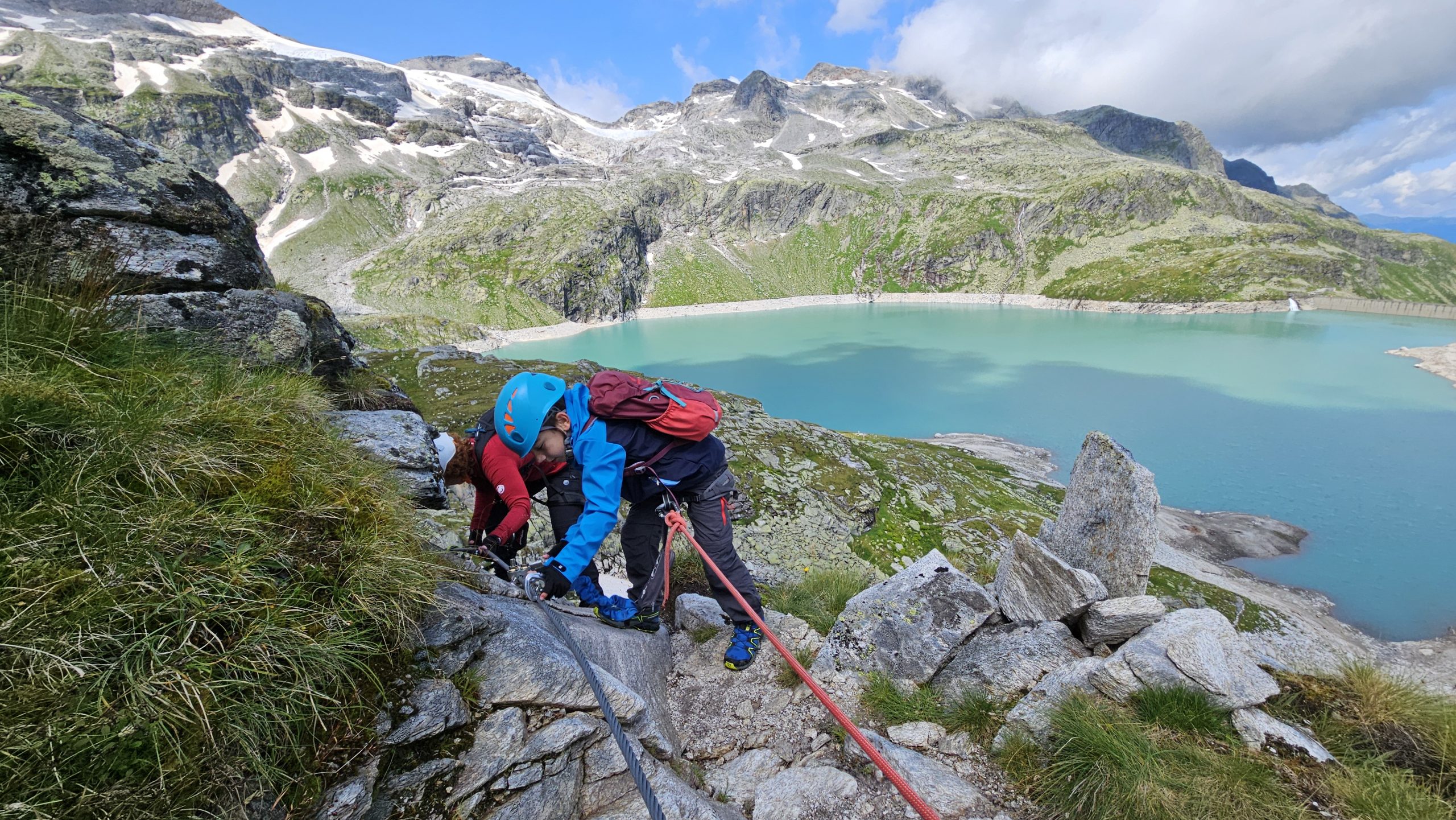 Ein perfekter Klettersteig für Anfänger und Familien am Weißsee! Der leichte, kindgerechte Steig verläuft am südlichen Ufer des türkisfarbenen Gletscherstausees über gestufte Granitplatten und bietet fantastische Ausblicke auf die umliegende Bergwelt. Der kurze Zustieg macht die Tour besonders attraktiv für Einsteiger.