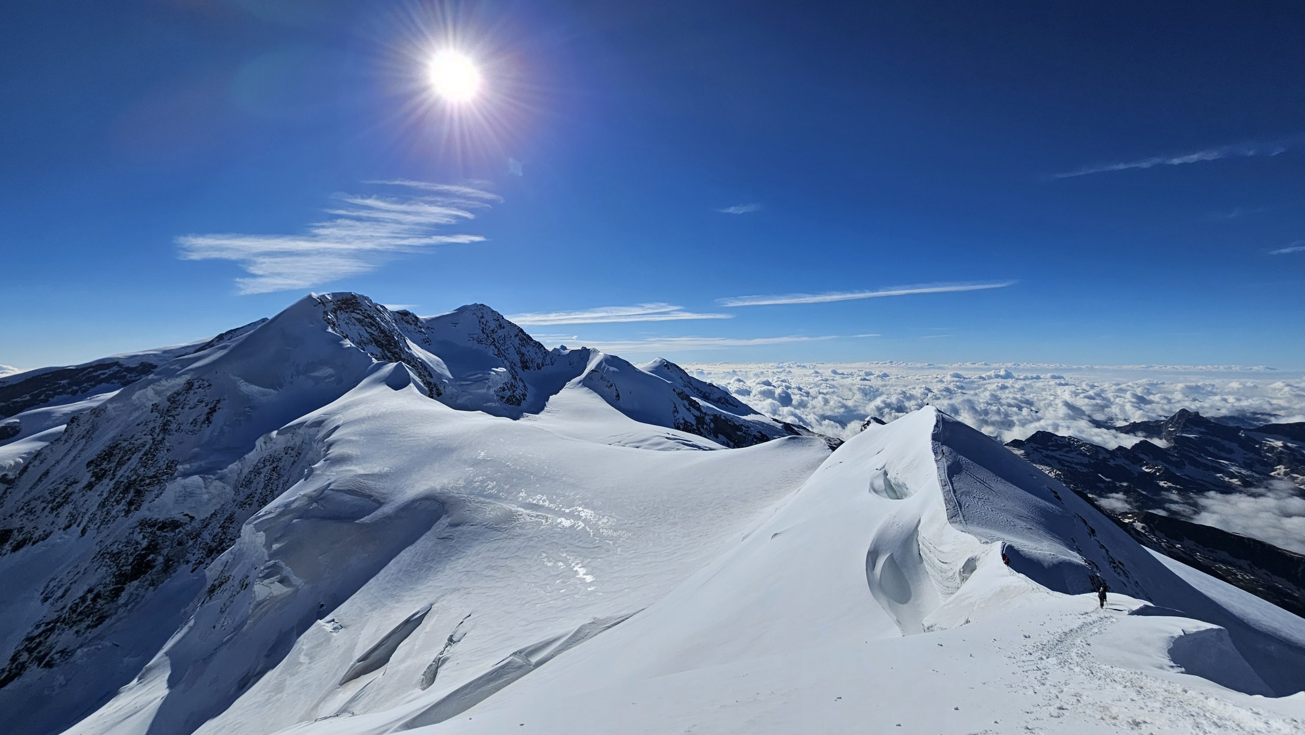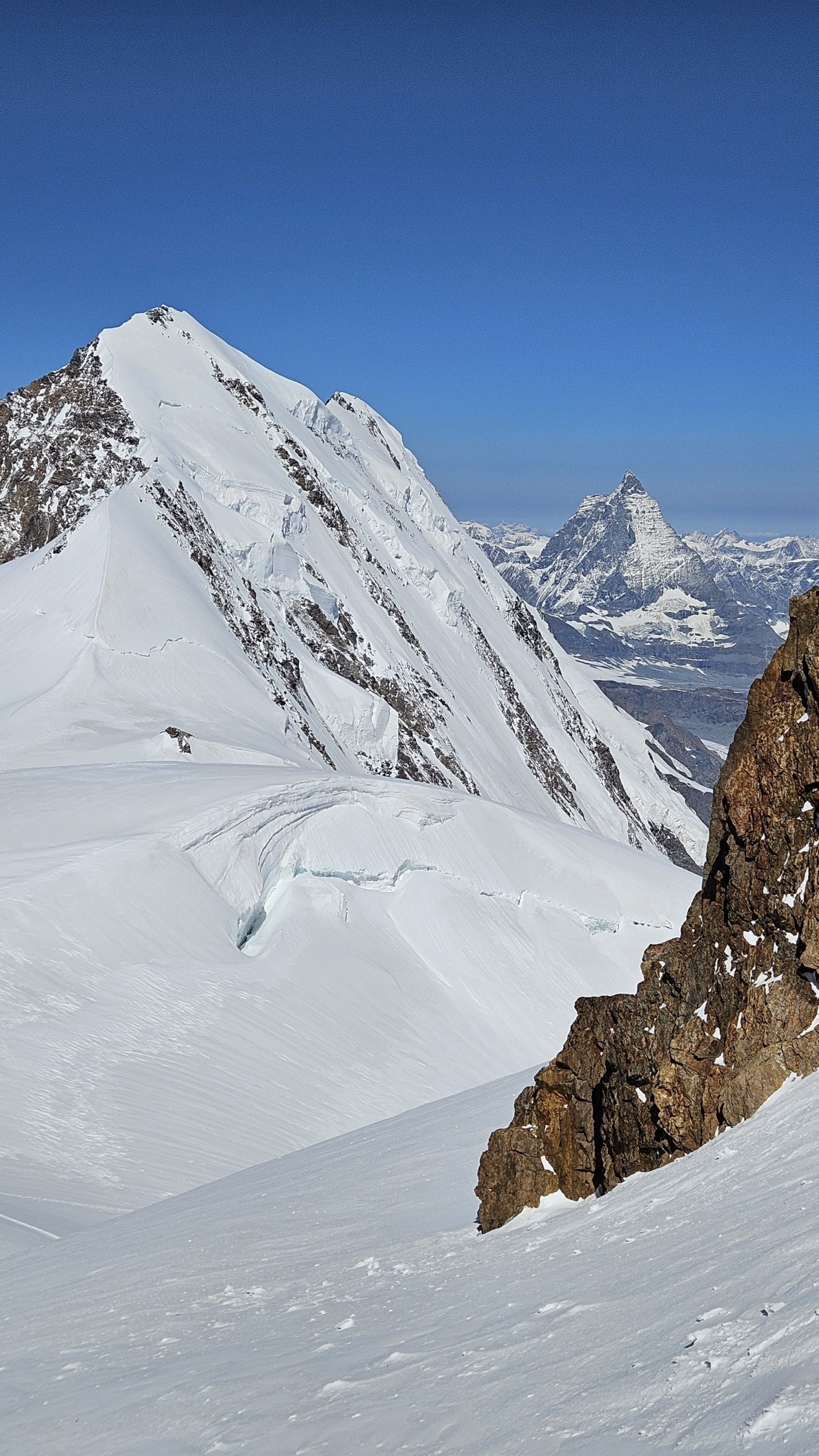 Heute heißt es früh starten. Noch im Schein unserer Stirnlampen steigen wir wieder zum Felikjoch auf wo unsere Überschreitung des Lyskamm beginnt. Auf Messers Schneide geht es über den West- und Ostgipfel des imposanten Lyskamm. Der Abstieg erfolgt den Grenzgletscher, vorbei an der Monte Rosa Hütte (Eventuell Übernachtung möglich) bis zum Bahnhof Rotenboden. Mit der Gornergratbahn geht es zurück nach Zermatt.