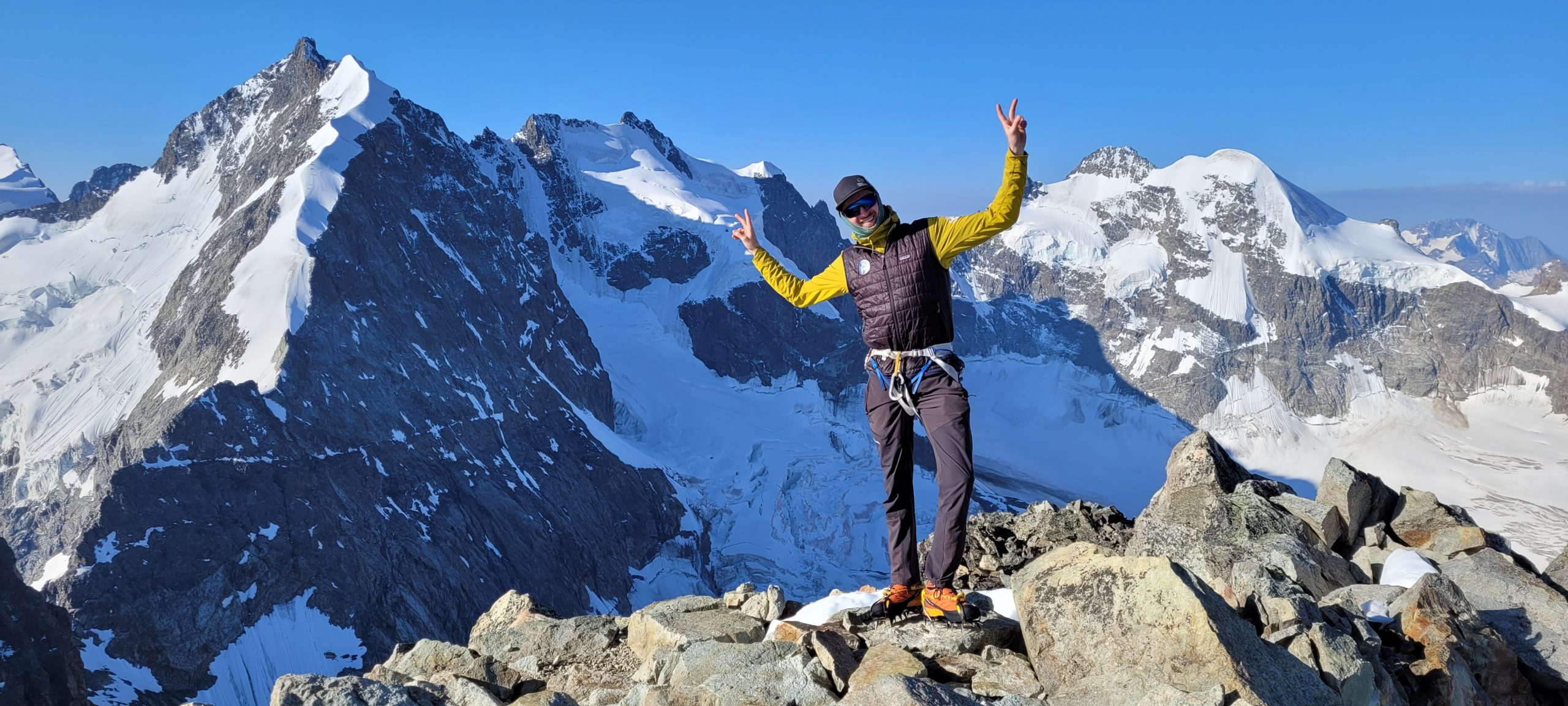 Zum überragenden Abschluss wartet heute die eindrucksvolle Überschreitung der 3 Palü Gipfel auf uns. Vorbei an der Bellavista-Terrasse bis auf den Hauptgipfel des Piz Palüs 3091m. Über den Ostgipfel und dem Persgletscher weiter zur Diavolezzabahn die uns in Tal bringt.