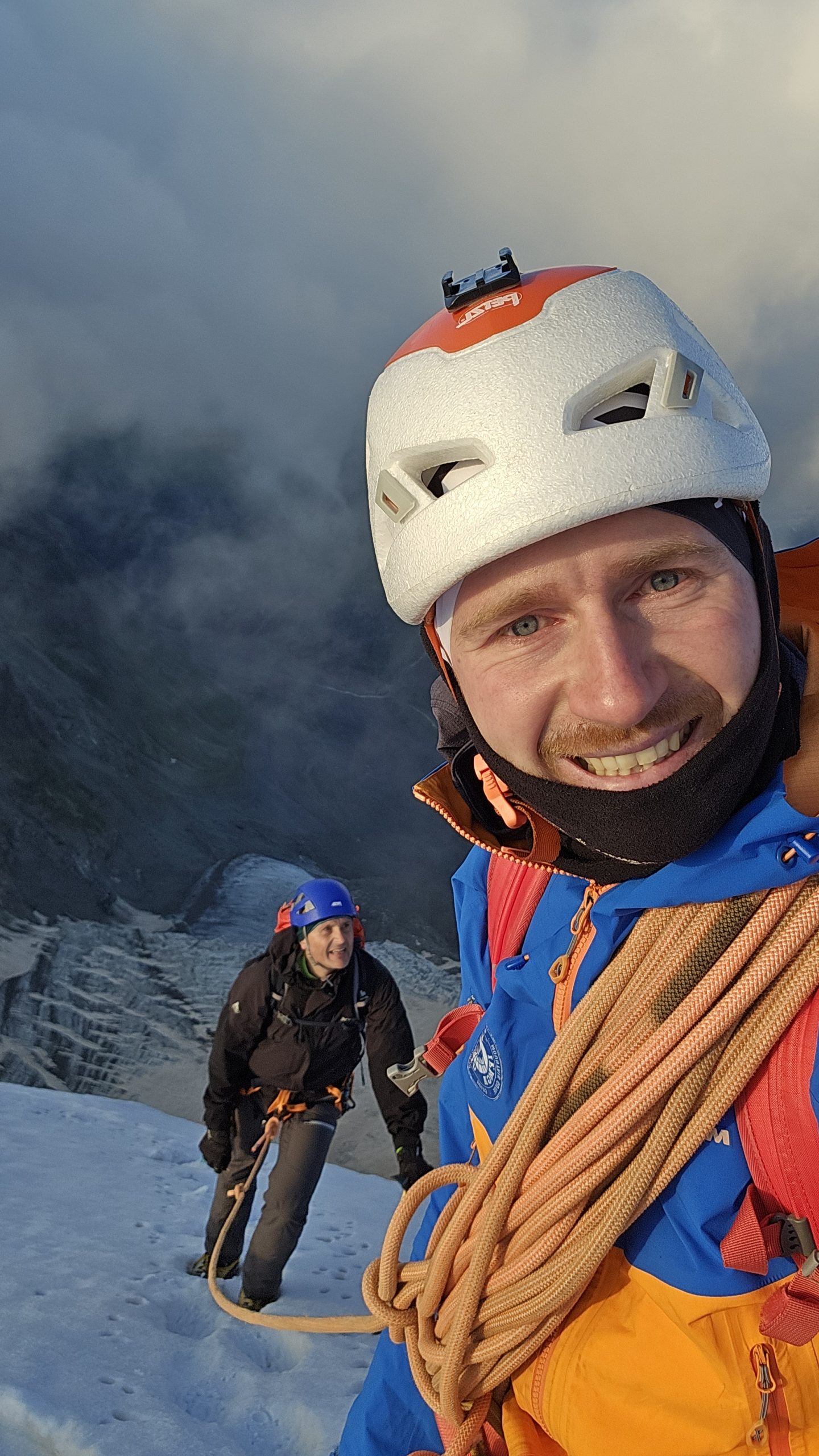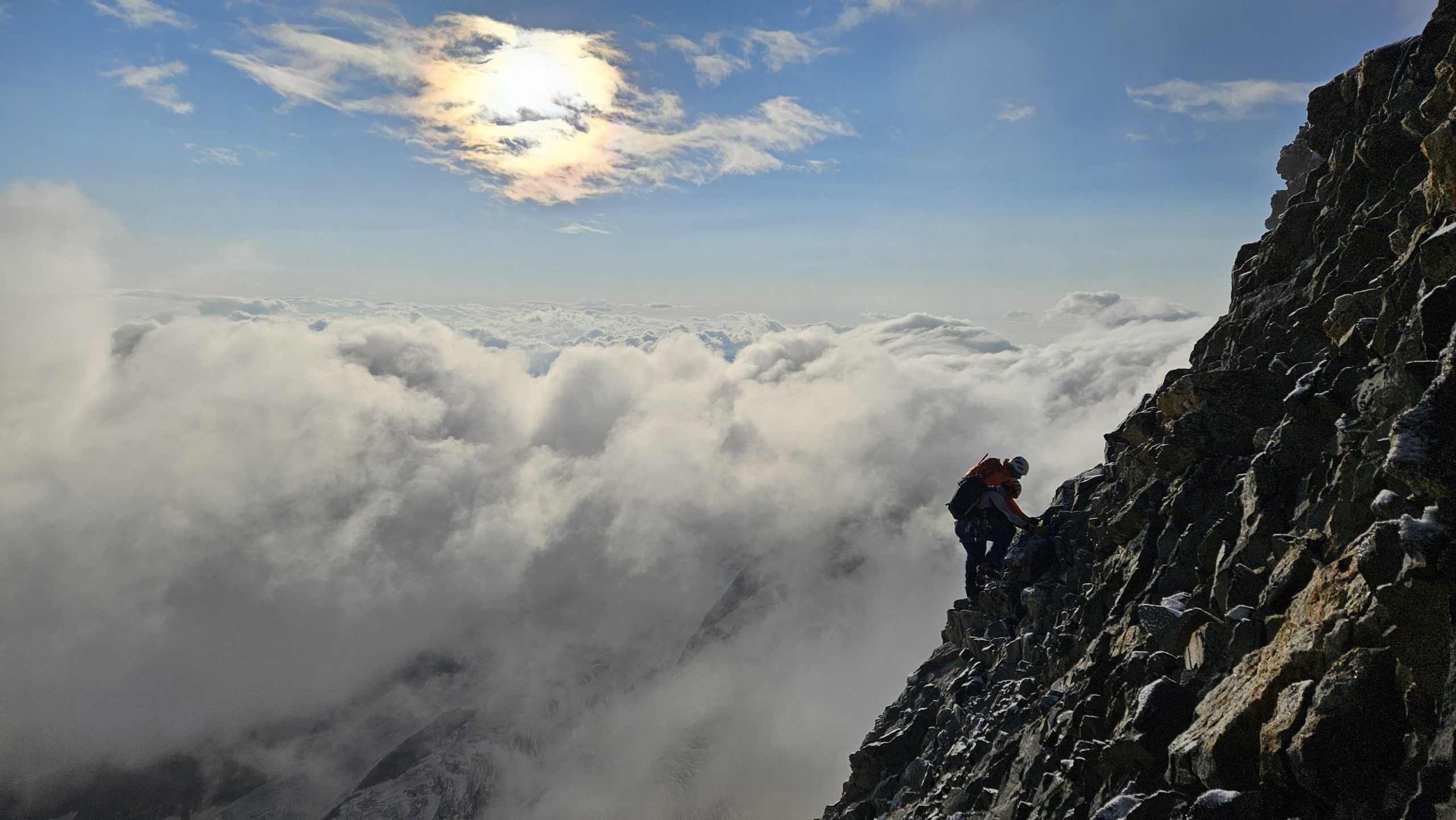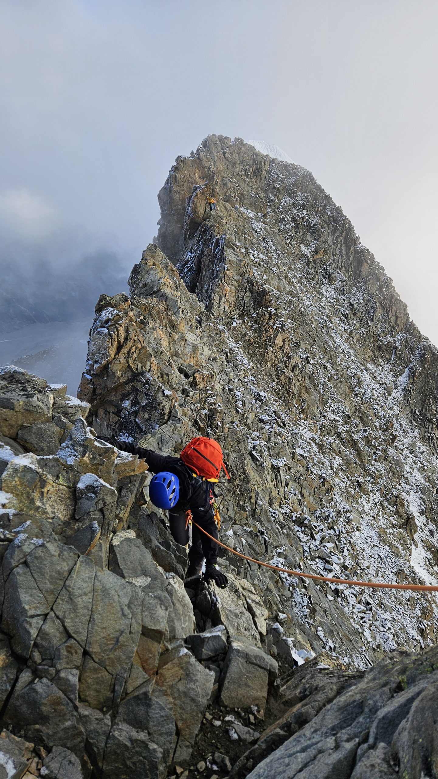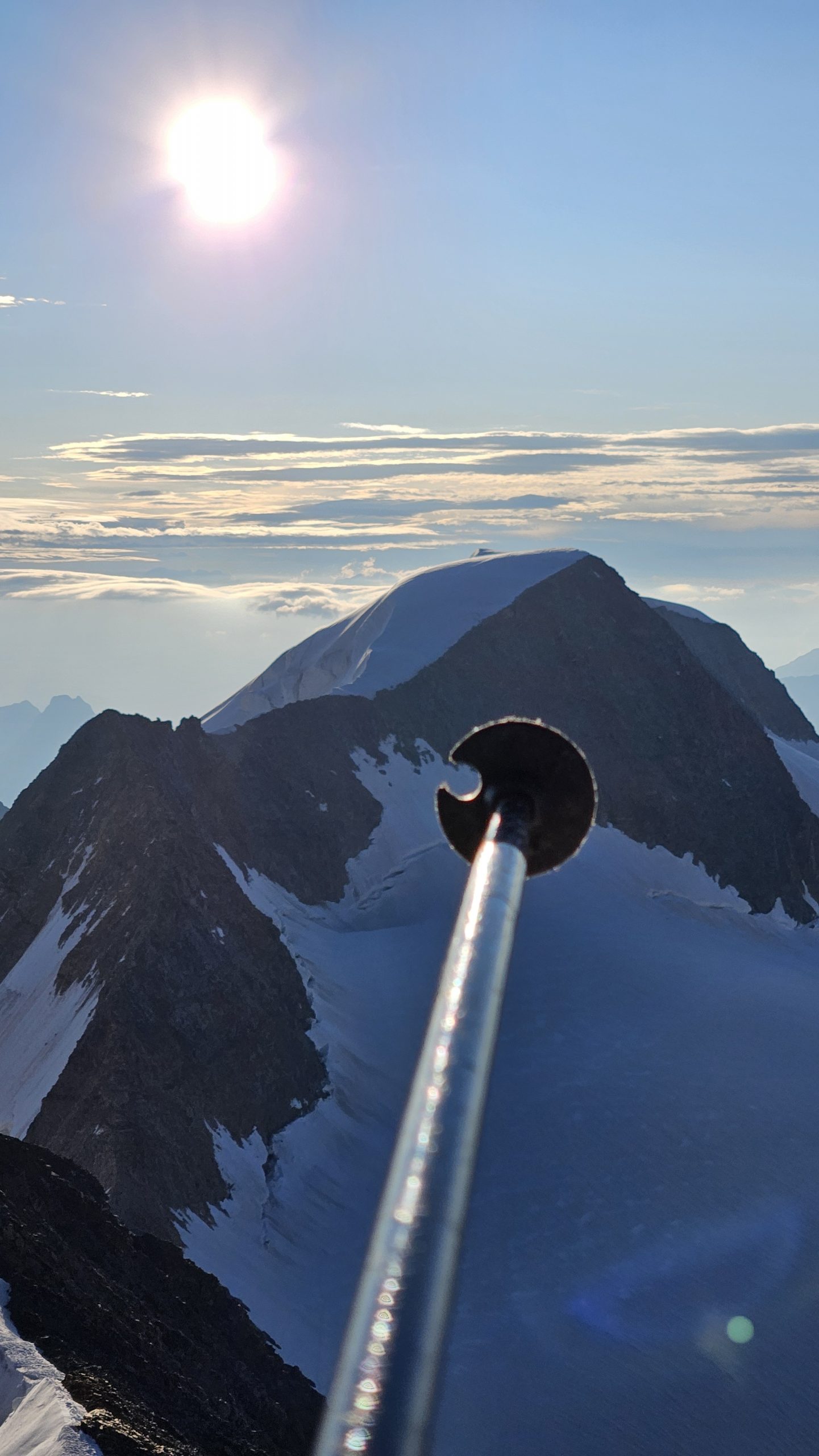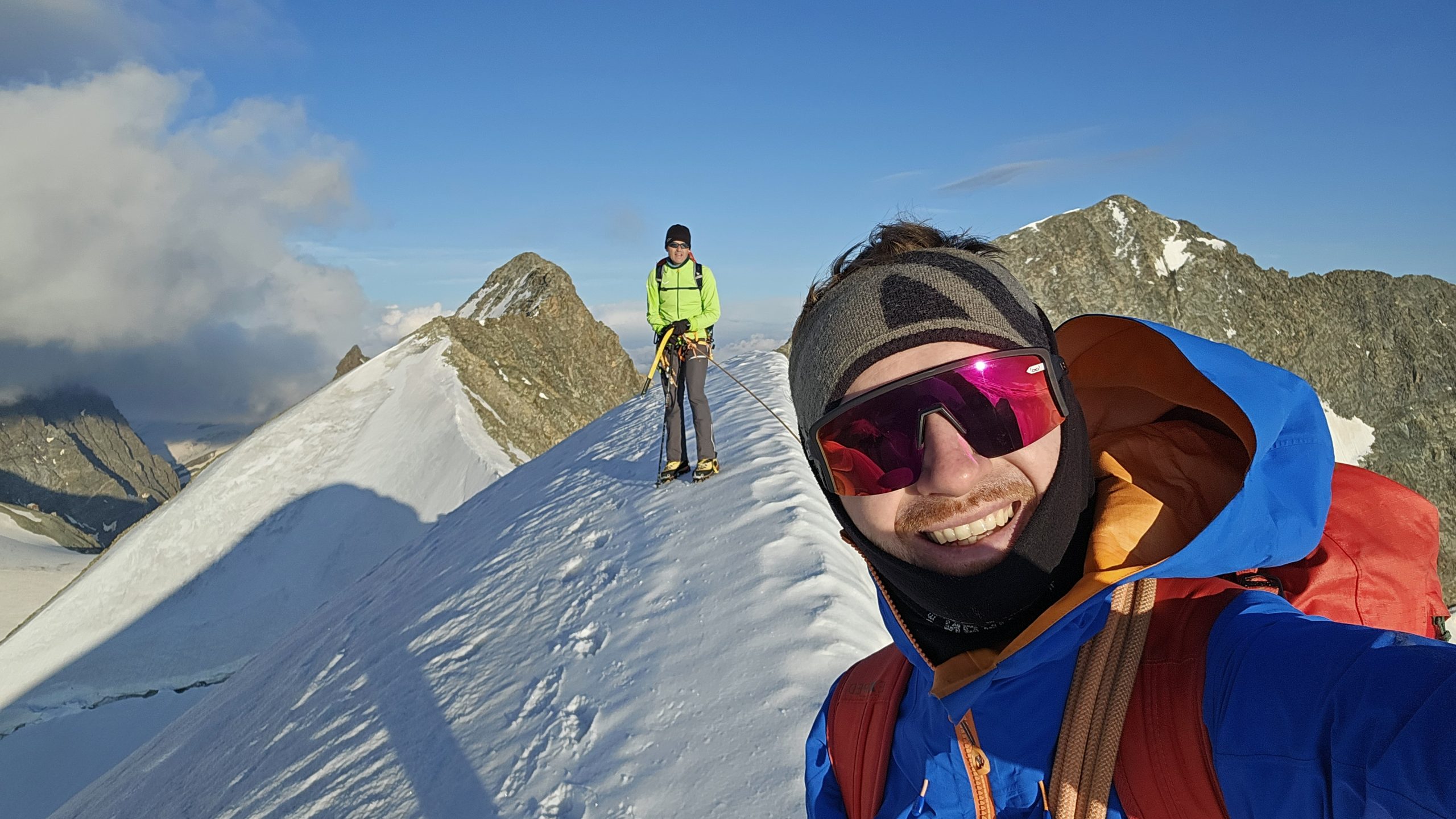 Nach einer ausgiebigen Gipfelrast und dem genießen des unbeschreiblichen Ausblickes beginnen wir mit dem Abstieg über dem Spallagrat zur Marco e Rosa Hütte 3597m wo wir Übernachten werden.