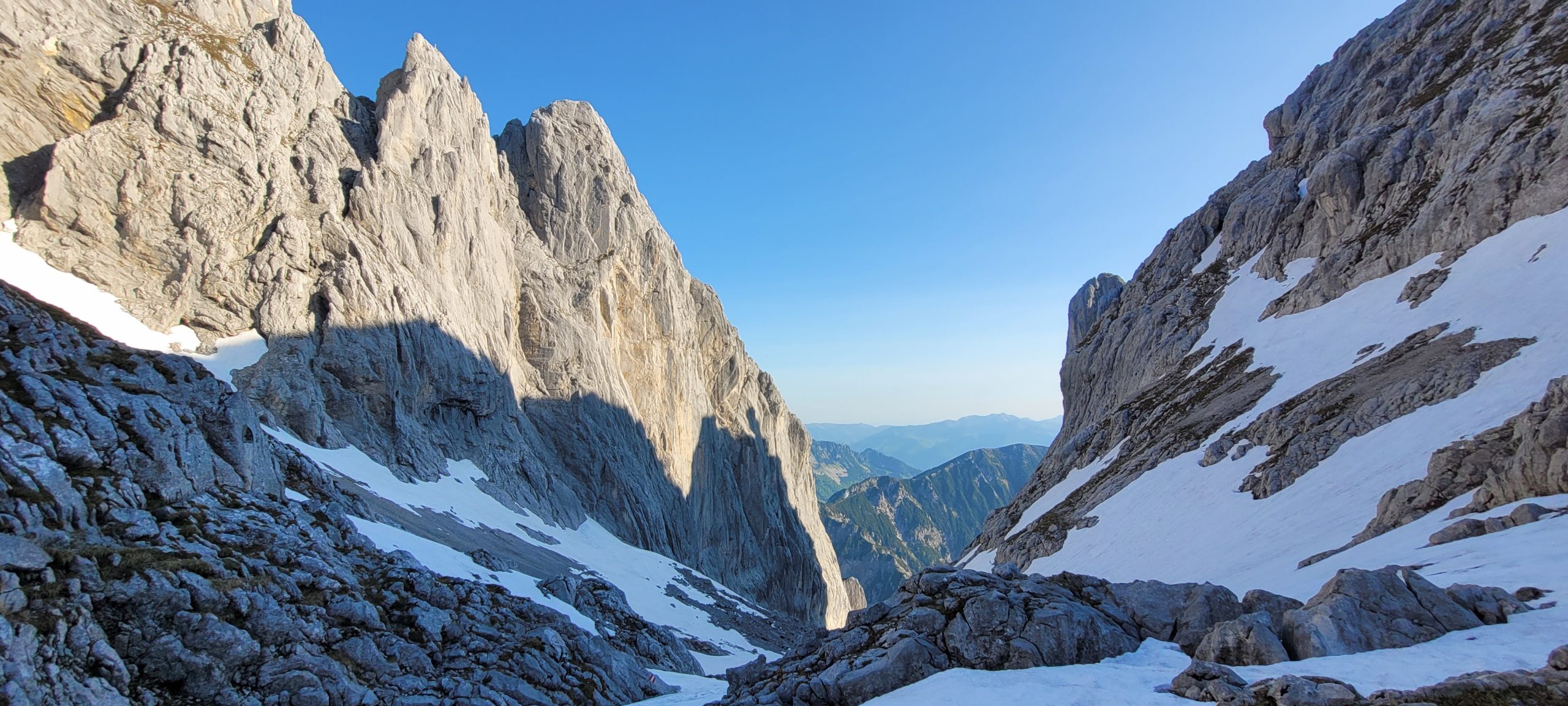 Der Nordgrat ist ein klassischer und sehr beliebter Anstieg auf die Fleischbank, der mit traumhaften Ausblicken und genussvoller Kletterei bis zum 3. Schwierigkeitsgrad aufwartet. Am Ende erwartet uns eine besonders schöne Kletterpassage auf dem Grat, die uns direkt zum Gipfelkreuz führt. Von dort genießen wir einen beeindruckenden Blick auf die berühmten Felsabbrüche des Predigtstuhls und des Totenkirchls.