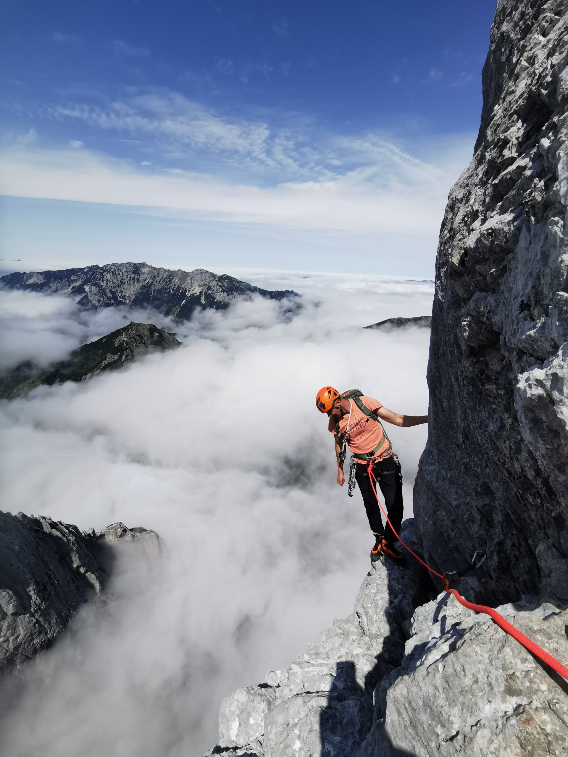 Zum krönenden Abschluss steht die Besteigung des Totenkirchls auf dem Plan – eine der herausragendsten Touren dieses Schwierigkeitsgrades im Wilden Kaiser! Der Fels bietet außergewöhnliche Festigkeit, und die Kletterei ist abwechslungsreich und spannend. Das Gehgelände auf der 2. und 3. Terrasse beeinträchtigt den Genuss kaum, da es uns die Gelegenheit gibt, die beeindruckende Landschaft in vollen Zügen zu erleben.
